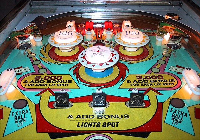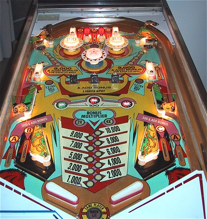 targets. The game features three roll-over lanes at the top and