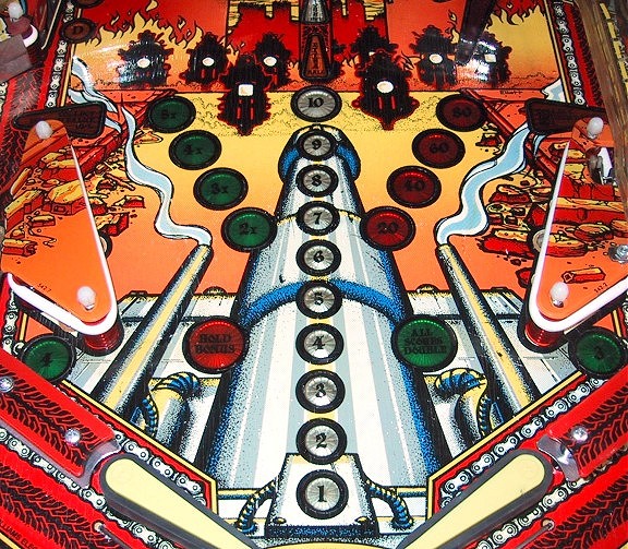 4. Do you like to gamble? Removing Mylar from a playfield is a gamble. Be prepared for some touch-up work on the paint no matter what. Paint is going to come up, its just a question of how much. Getting your Machine Ready The decision has been made, you're going to attempt to remove the Mylar from the playfield. The first thing that you'll need to do is to strip the playfield of all parts. You'll need to take everything off the top, remove all the light bulbs and remove any standup switches or targets that protrude through the playfield. Your playfield should be virtually empty before you begin: